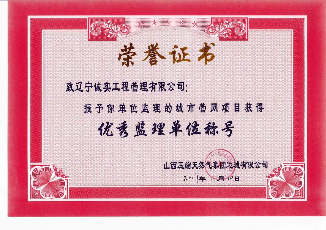 2017年山西压缩天然气集团优秀监理单位