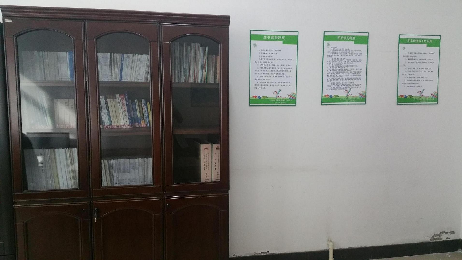 公司投入6万余元,设30m2职工书屋1个,二三四层电梯间外图书阅览角3个,共存有报刊杂志30余种,各类书籍2000余册,种类涉及专业教材、实用百科、古典名著、百科全书、世界名著、历史名人、综合图书、企业管理、党史综合、文史类等各方面,可满足员工多样化的阅读需求。