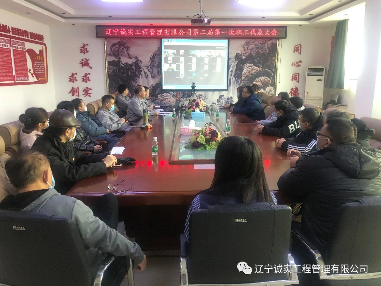 2021年2月9日早9:30在公司一楼会议室召开了B体育手机官方网站入口第二届第一次职工代表大会,由于工作原因,一部分职工代表无法回抚,代表会结合线上、线下共同召开。共计40位职工代表,实到会议37位(其中线上17位,线下20位)。出席此次会议的领导有:总经理田立奎、副总经理任润东(美亚项目总监理工程师)、副总经理邓戎龙。