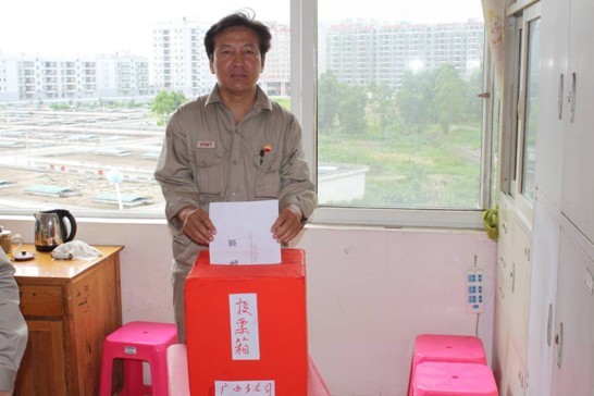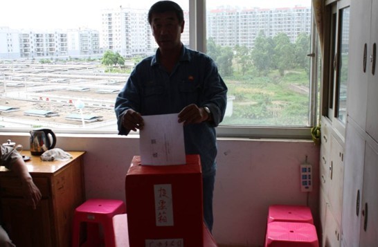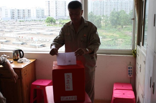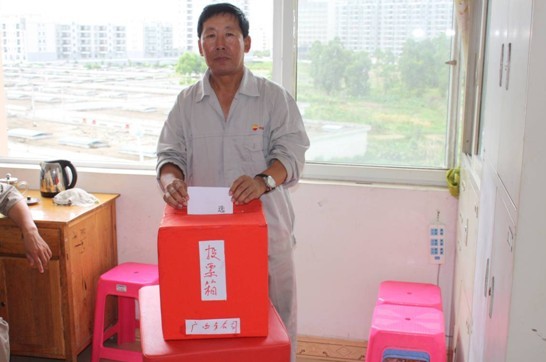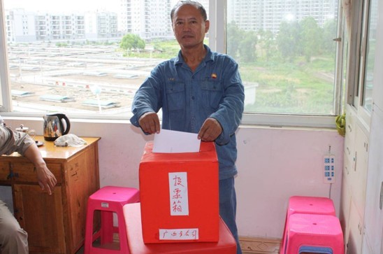 祝奕同志在投票