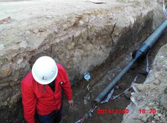 消防水管做水压试验,地下管网完成70%